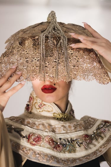 Pearls operate as the organising metaphor: small, luminous, formed slowly. Each garment is presented as a pearl of cultural memory, polished into a contemporary object that carries time and provenance. That metaphor keeps the collection humble; it asks viewers to consider accumulation and care rather than spectacle, to see beauty as something grown and tended rather than instantly manufactured.