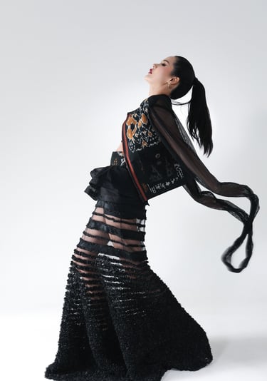 is inspired by the iconic Frangipani flower, known in Bali as 'Bunga Kamboja'. This flower, with its delicate beauty and deep cultural significance, has always been close to my heart. In Indonesia, the Frangipani symbolizes both life and death, purity and spirituality, making it a perfect metaphor for the dualities I explore in my designs. This collection takes the essence of the Frangipani—its soft, elegant petals, its vibrant colors—and translates it into flowing silhouettes, intricate embroidery, and a palette that moves from gentle pastels to bold, vibrant hues.