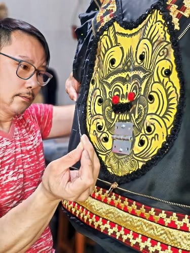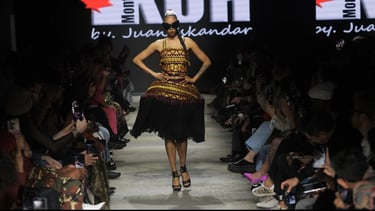 BARONG, Trends Fashion 2024 is a study in myth made wearable. Juan drew from the Balinese Barong—the guardian spirit whose epic struggle with darkness is both theatre and moral compass—and translated its energy into silhouette, texture and movement. Fabrics are layered like ceremonial masks; embroidery and beadwork echo the creature’s ornate costume; tailoring captures the Barong’s stately presence while allowing human motion.